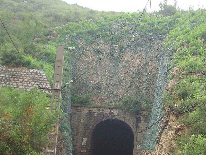 中下部分由特殊的主動防護網構成,主動防護網雖然覆蓋在山體表面,但從上而下是通暢的。