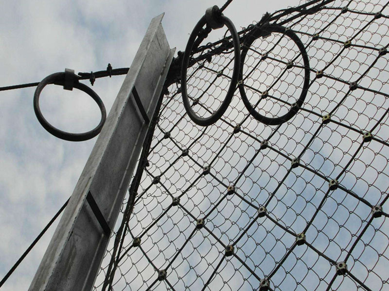 上半部分由特殊的被動防護網組成,鋼絲繩網和立柱是分離的。